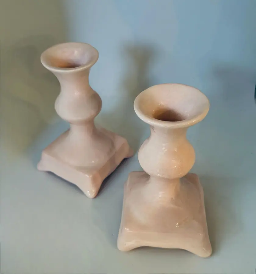 זוג פמוטים מקרמיקה - בצבע ורוד בייבי בגימור מבריק