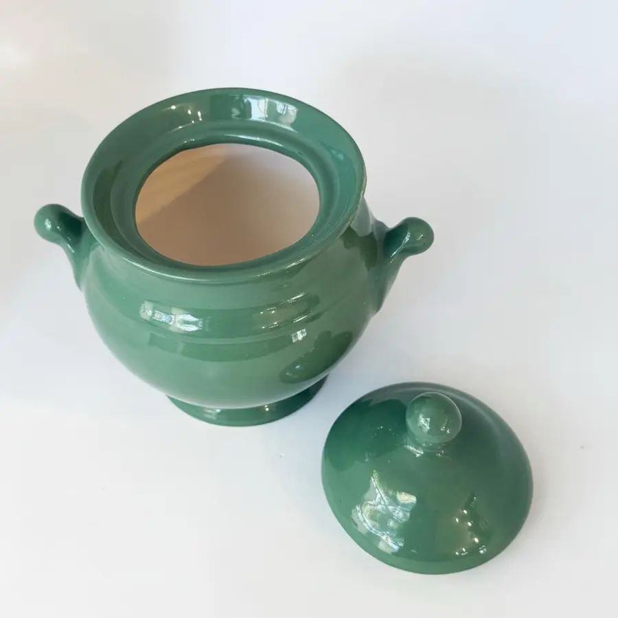 צנצנת קרמיקה עם מכסה בעבודת יד ונפח של 600 מ"ל , בצבע ירוק