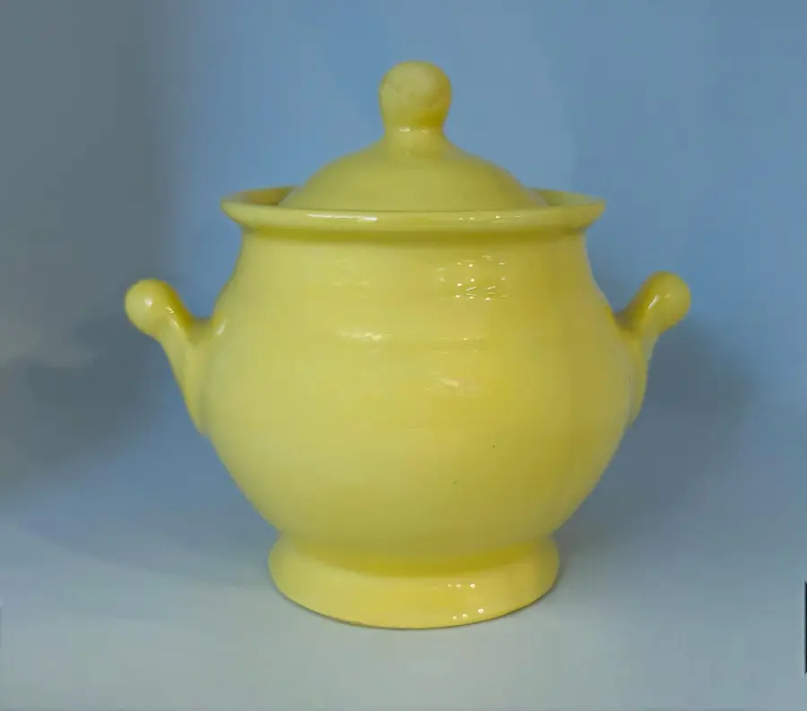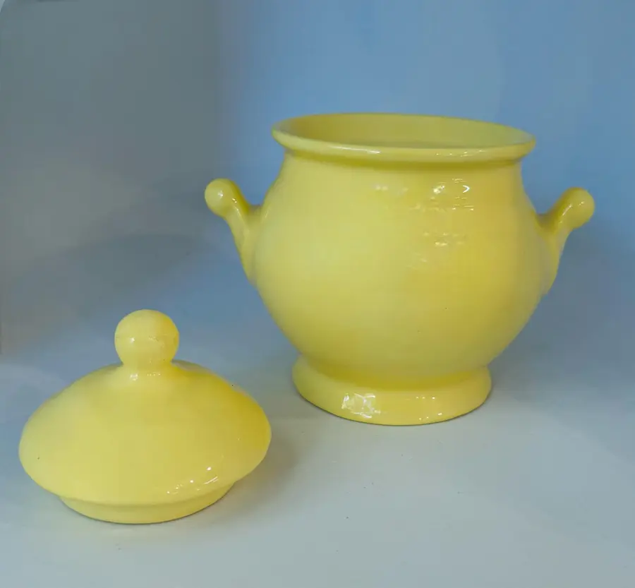 צנצנת קרמיקה עם מכסה בעבודת יד ונפח של 600 מ"ל , בצבע צהוב