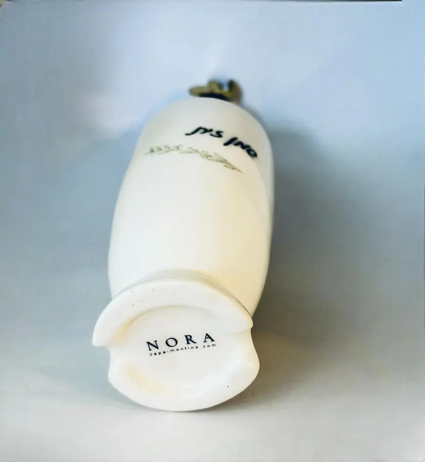 בקבוק קרמיקה בעבודת יד ונפח של 450 מ"ל , בצבע לבן כיתוב - שמן זית