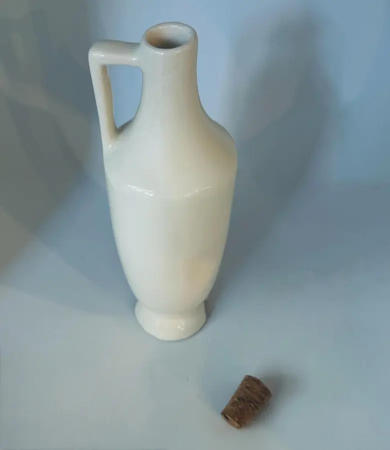 בקבוק קרמיקה בעבודת יד ונפח של 450 מ"ל , בצבע לבן כיתוב - שמן זית