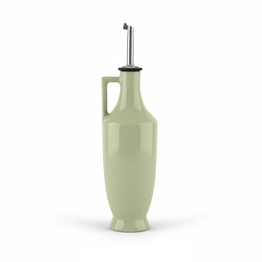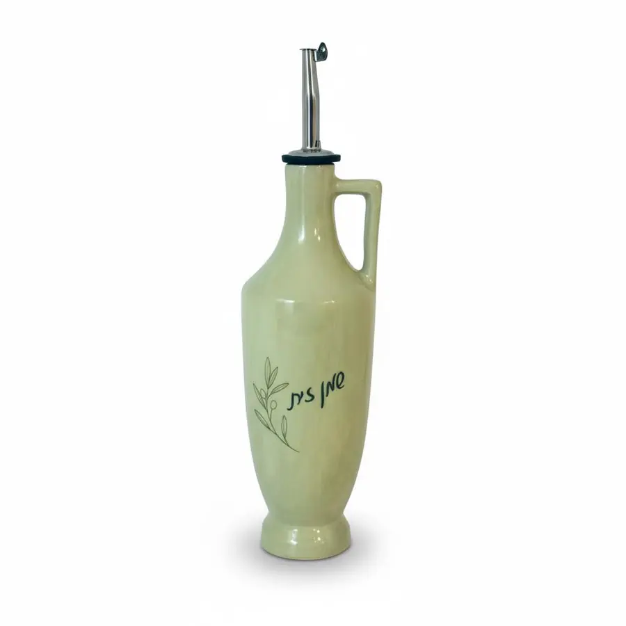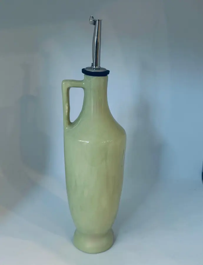 בקבוק קרמיקה בעבודת יד ונפח של 450 מ"ל , בצבע ירוק כיתוב - שמן זית