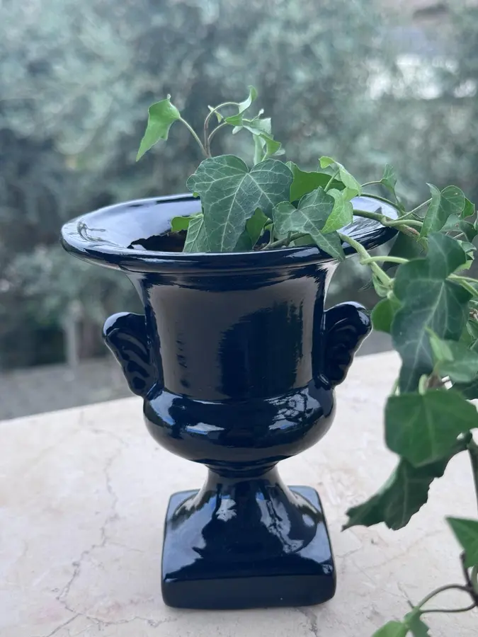 ואזה קטנה מקרמיקה - עבודת יד בצבע שחור