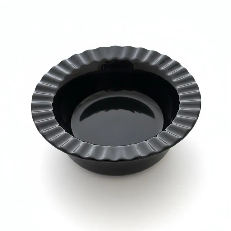 צלחת פליסה עמוקה על רגל בצבע שחור מקרמיקה - עבודת יד