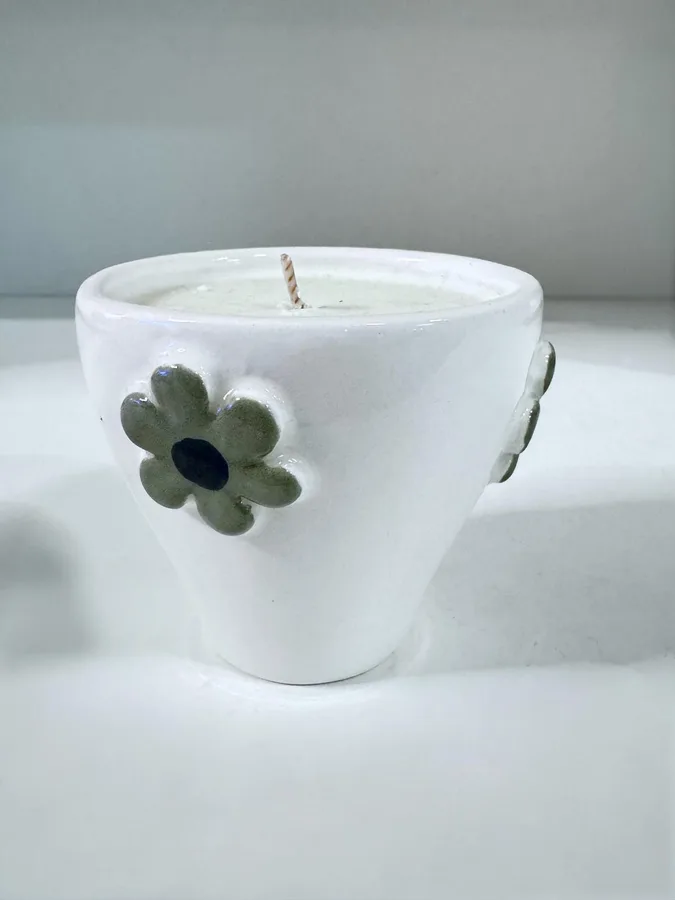 נר ריחני בתוך ספל קרמיקה עבודת יד