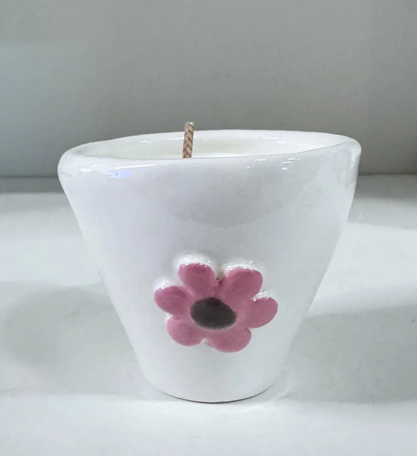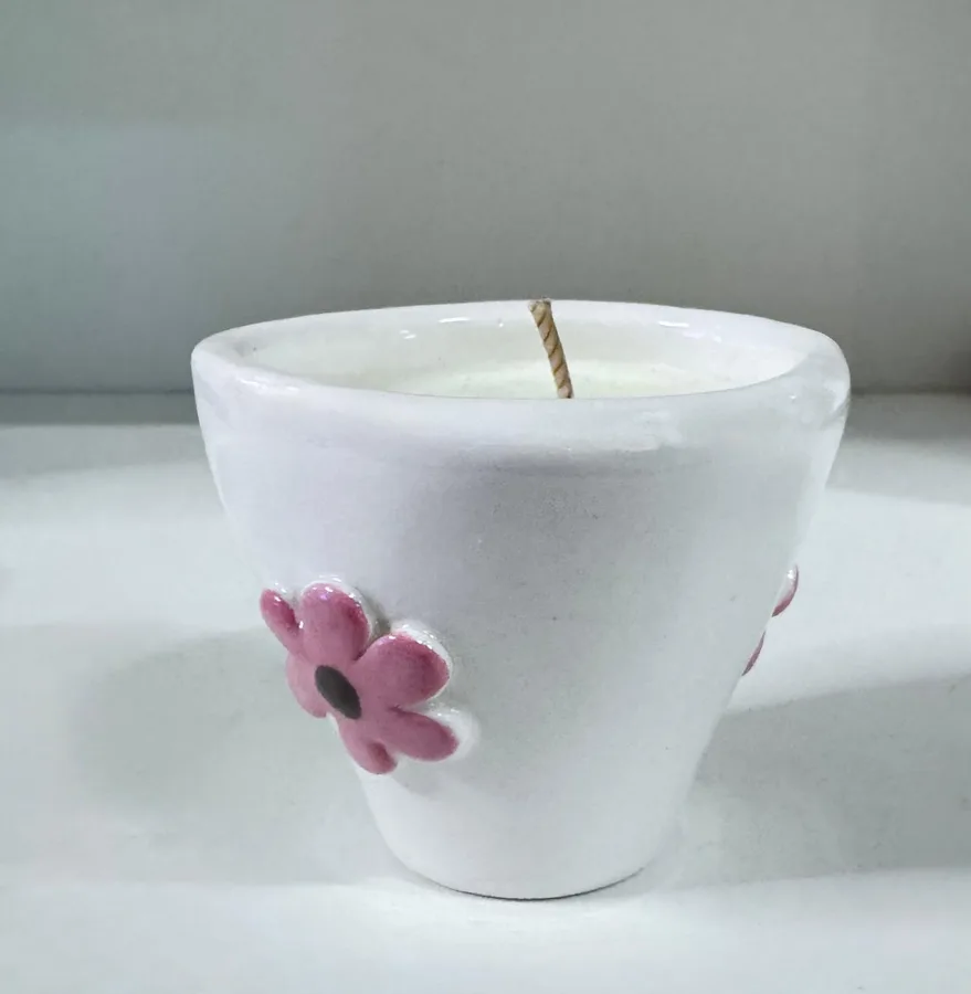 נר ריחני בתוך ספל קרמיקה עבודת יד