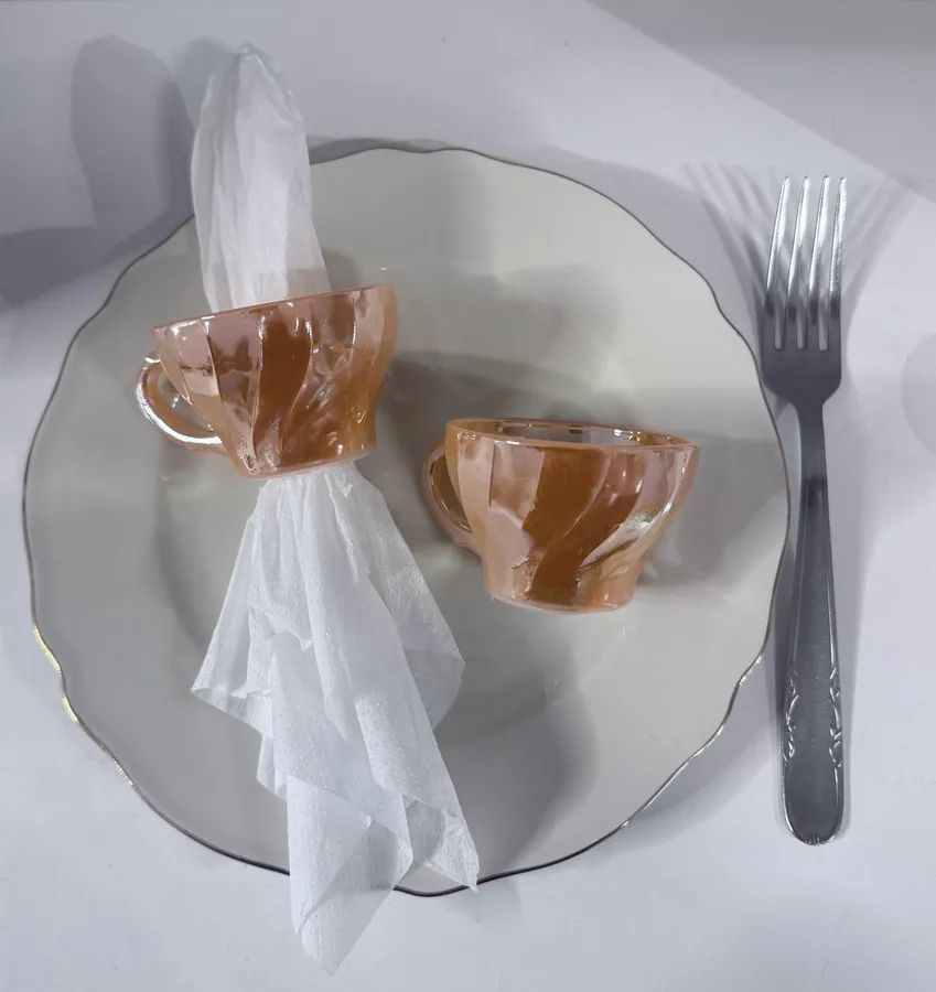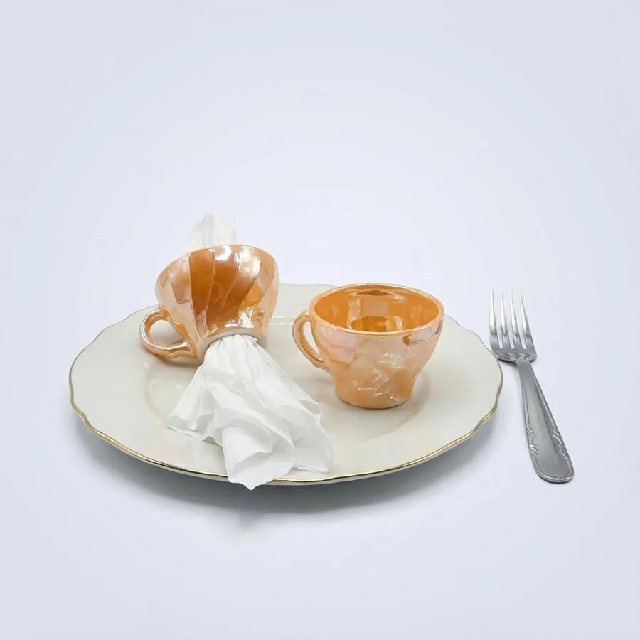 ספל פורצלן וינטג׳ שקיבל חיים חדשים והפך לחבק למפית