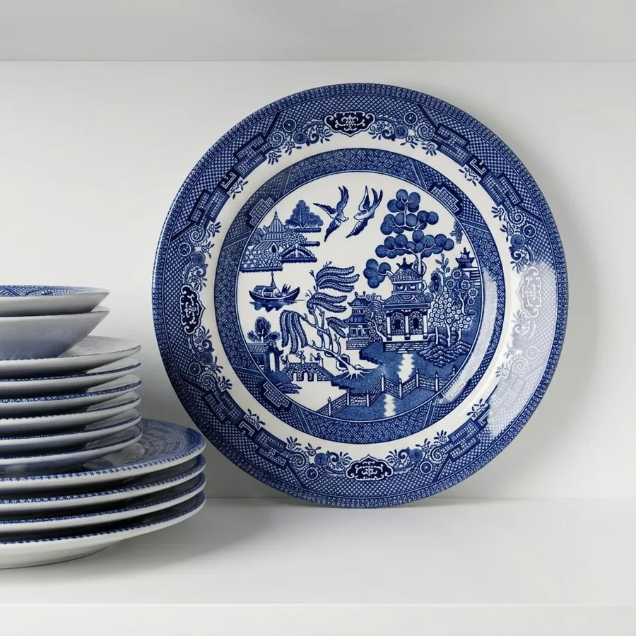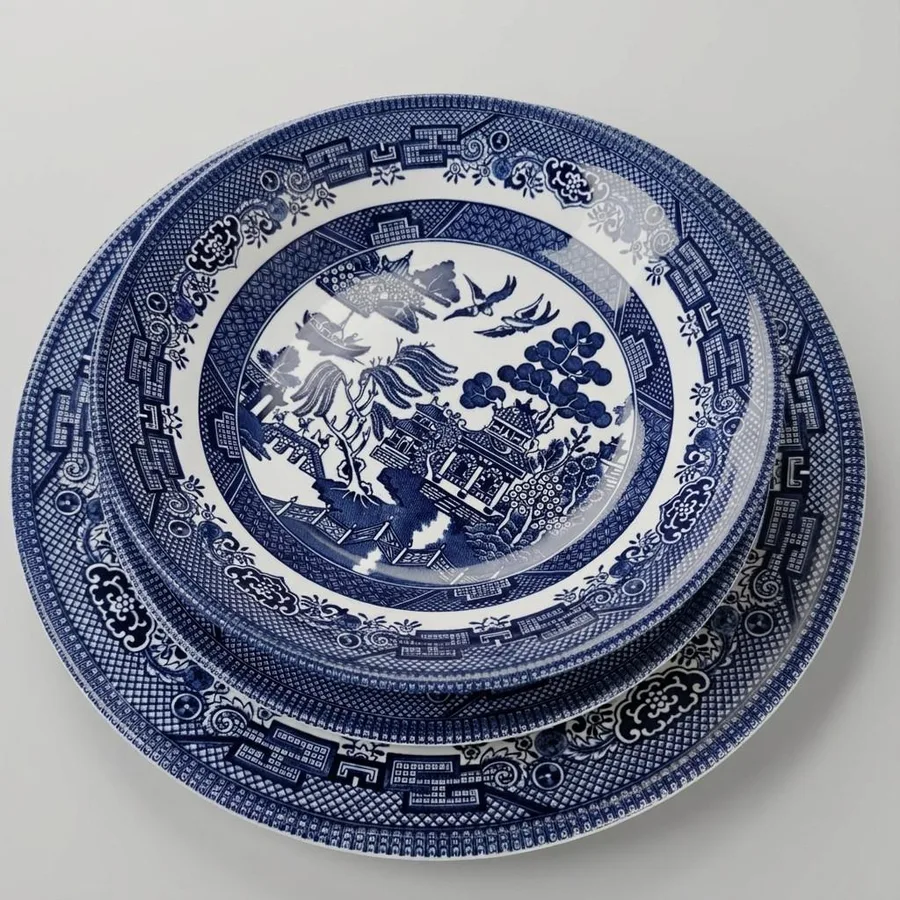 צלחת מנה ראשונה חרס בגוונים כחולים