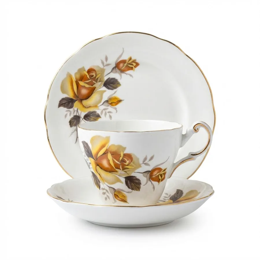 כולל איורי שושנה בגוונים צהובים ופס זהב במצב מעולה