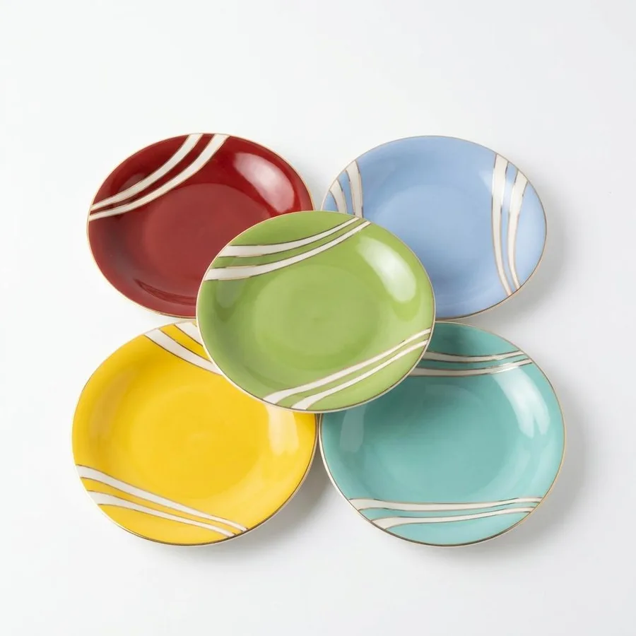 5 צלחות צבעוניות לעוגה מפורצלן