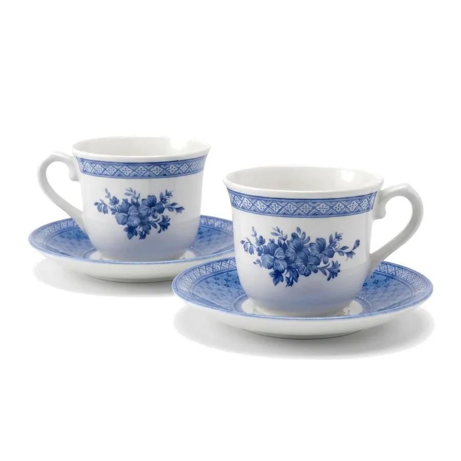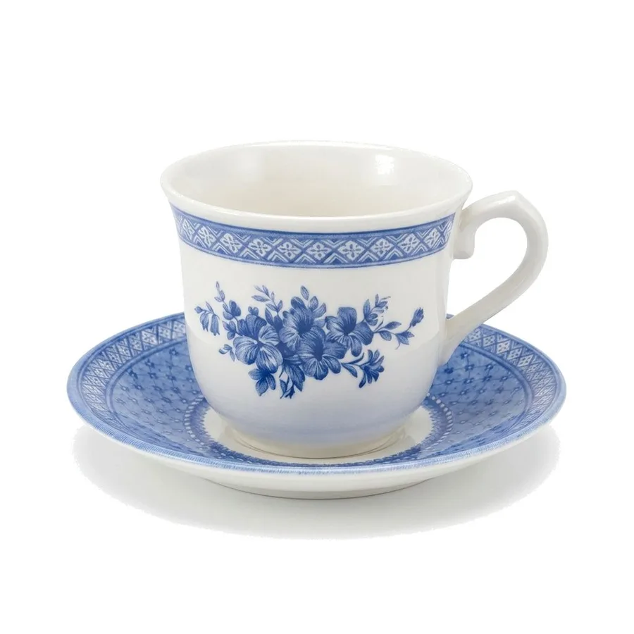 ספל וצלחת מחרס אנגלי בצבע כחול לבן