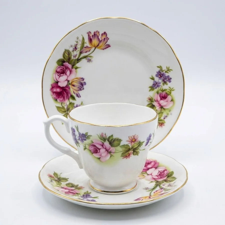 ספל ,צלחת תחתית וצלחת עוגה מפורצלן