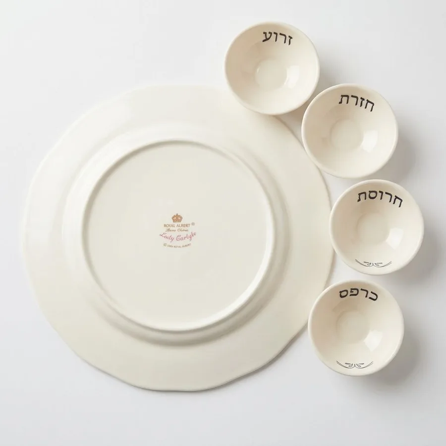 צלחתROYAL ALBERT וקעריות קרמיקה עבודת יד = צלחת פסח