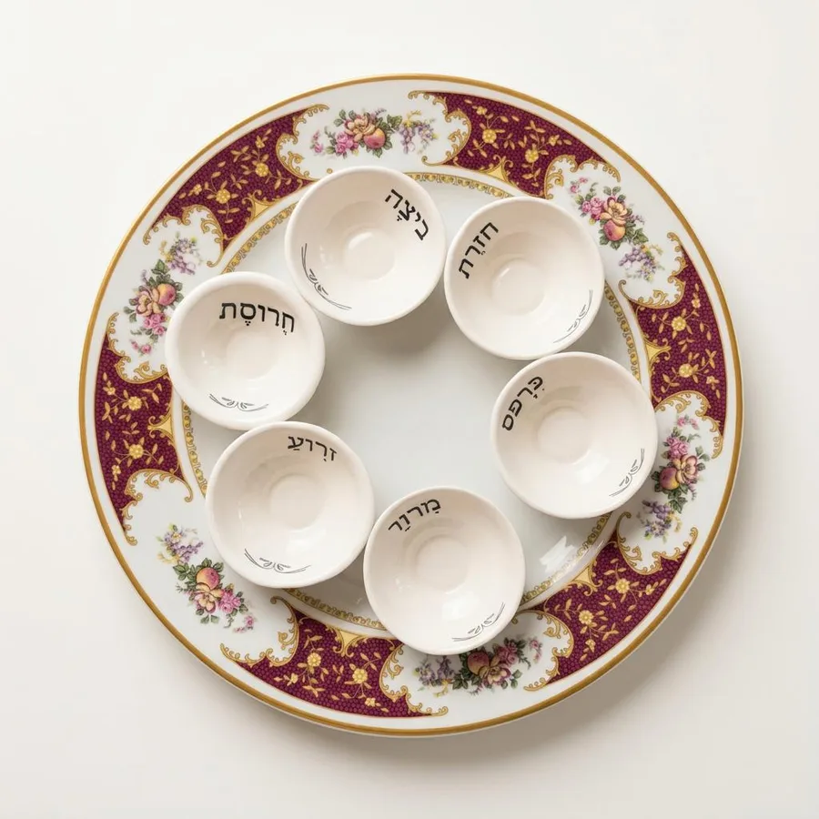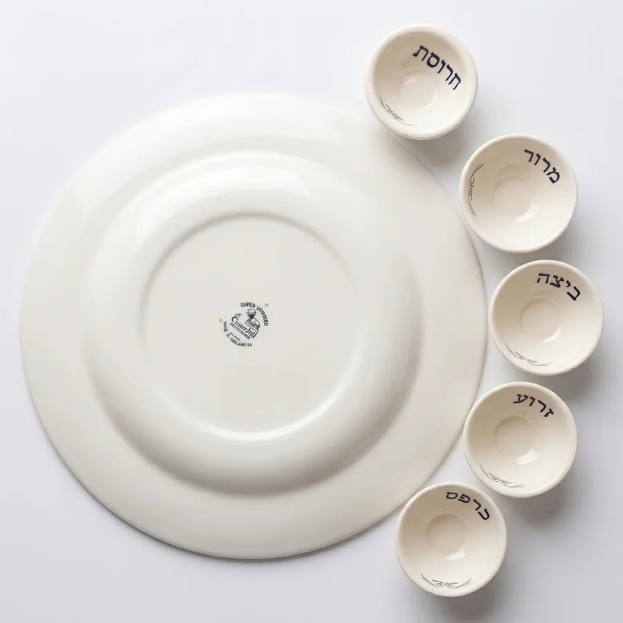 צלחת וינטג וקעריות קרמיקה עבודת יד = צלחת פסח