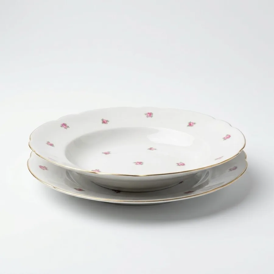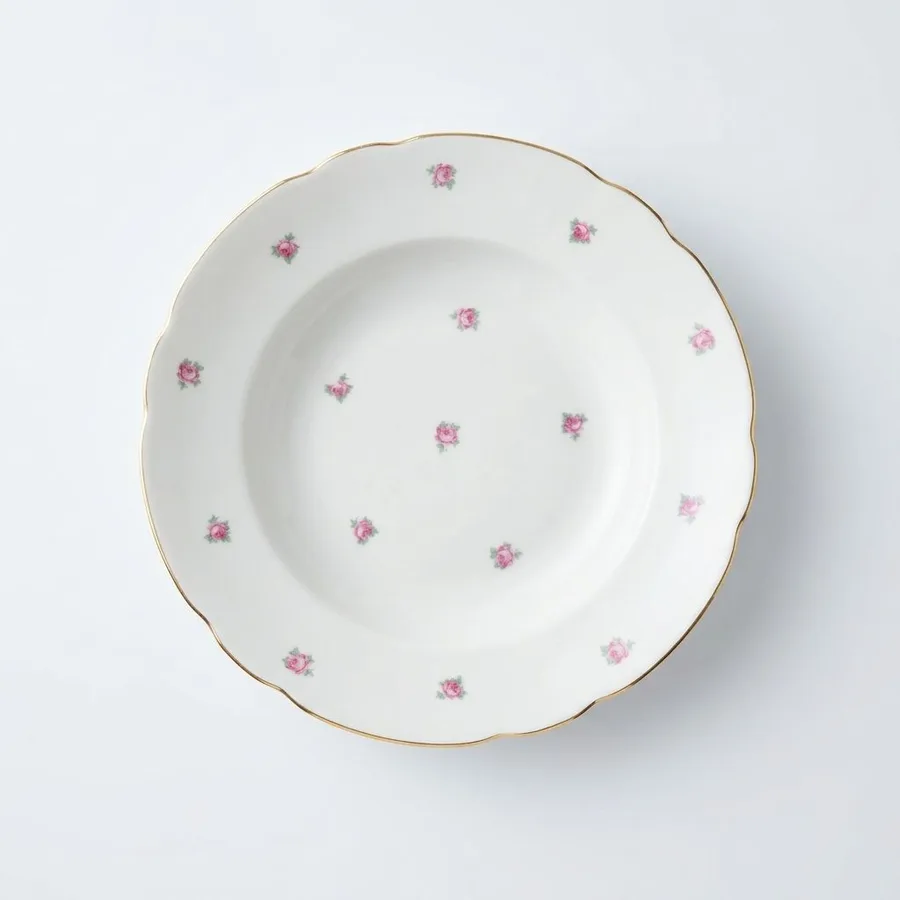 מאויר בשושנים ורודים קטנטנים כולל פס זהב בדופן הצלחת