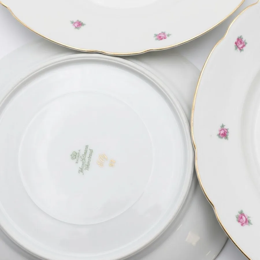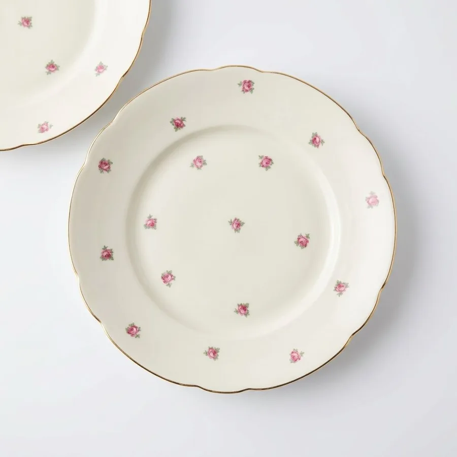 מאויר בשושנים ורודים קטנטנים כולל פס זהב בדופן הצלחת