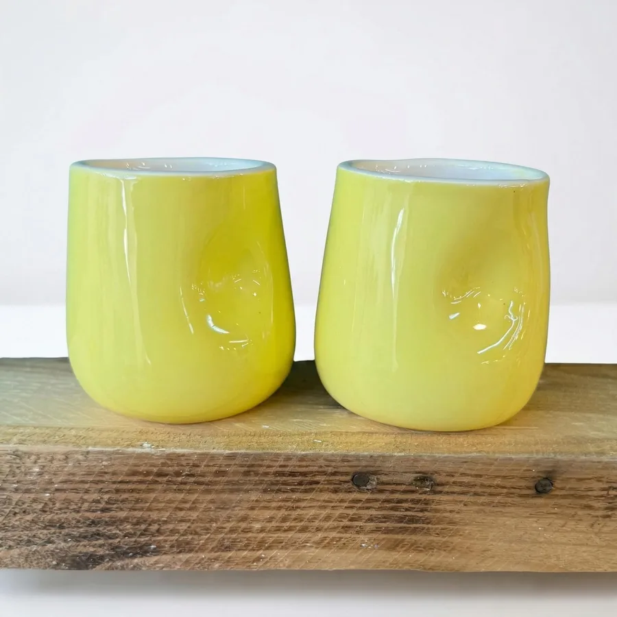 ספל מקרמיקה עבודת יד בצבע צהוב