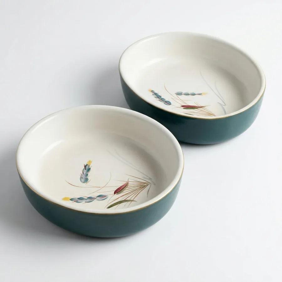 מאויר בציור חיטה מעניין כולל פס ירוק בדופן הצלחת