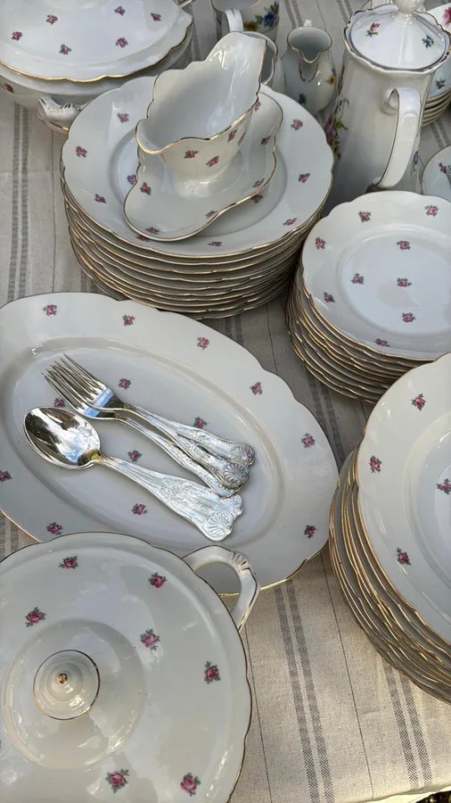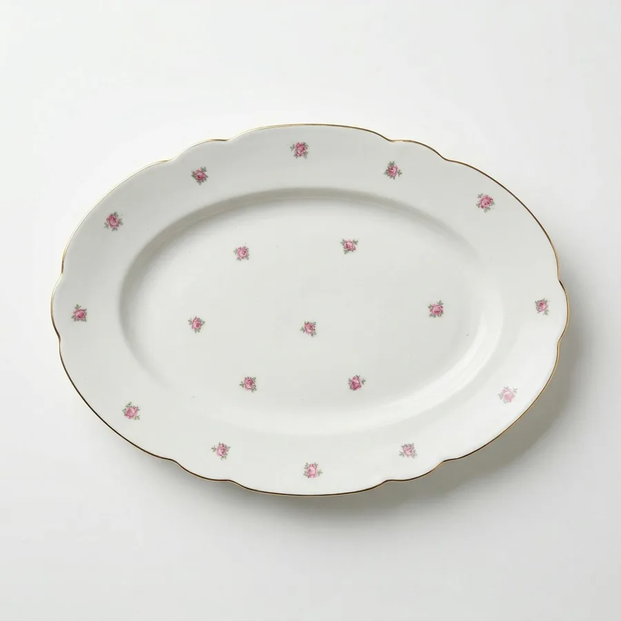מאויר בשושנים ורודים קטנטנים כולל פס זהב בדופן הצלחת