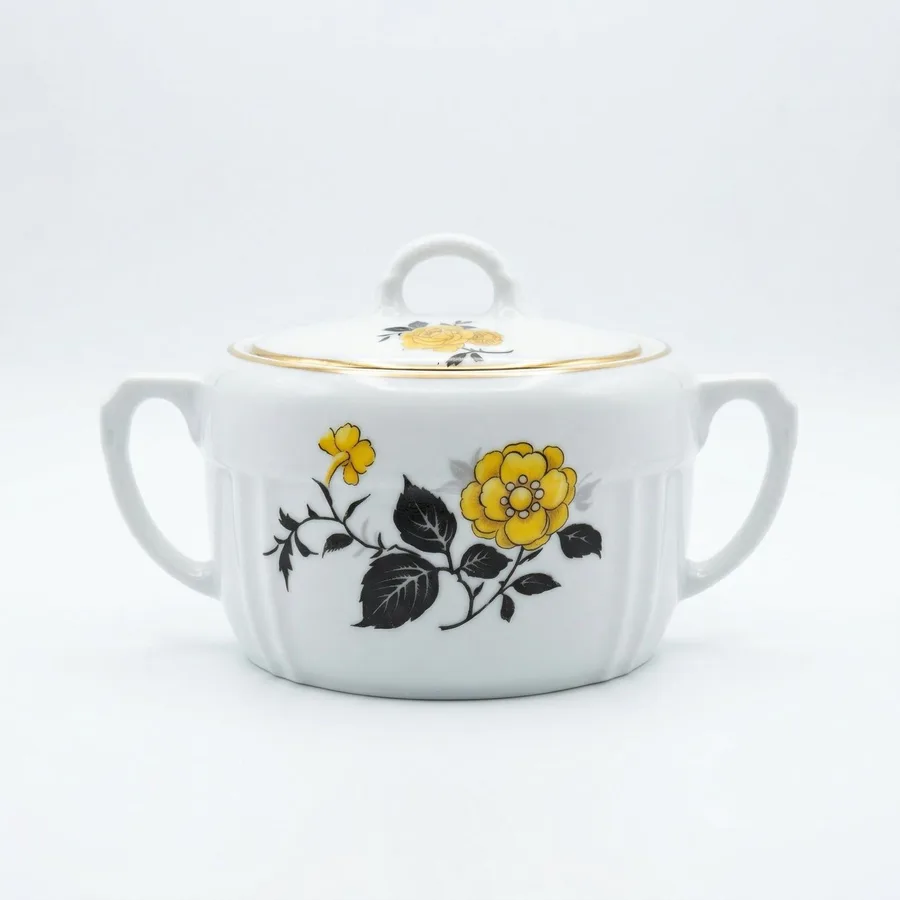 כלי סוכר מפורצלן חלק מסרוויס שושנה צהובה