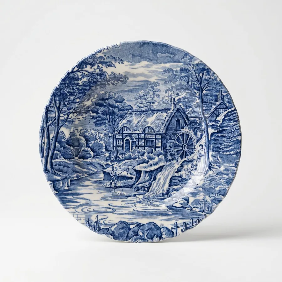צלחת עוגה מחרס אנגלי חלק מסרוויס טחנת המים