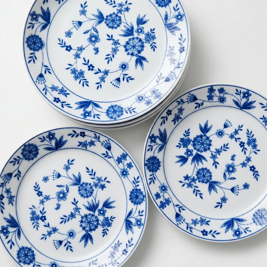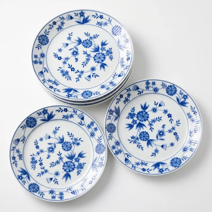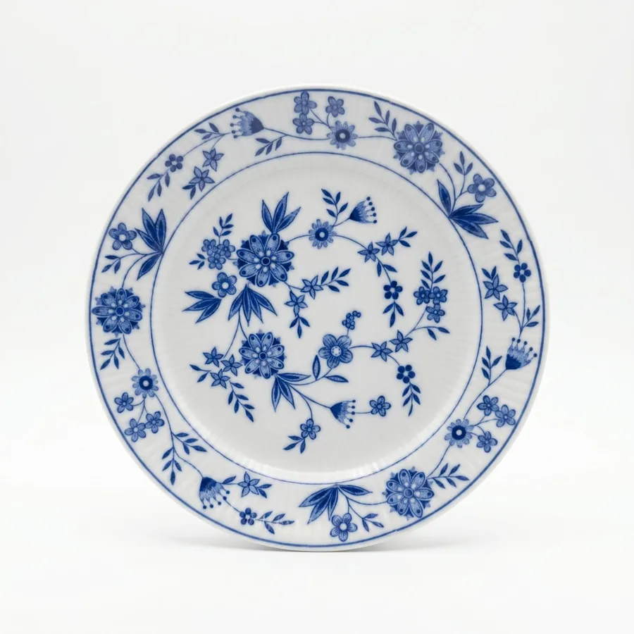 צלחת מפורצלן חלק מסרוויס פרחים כחולים