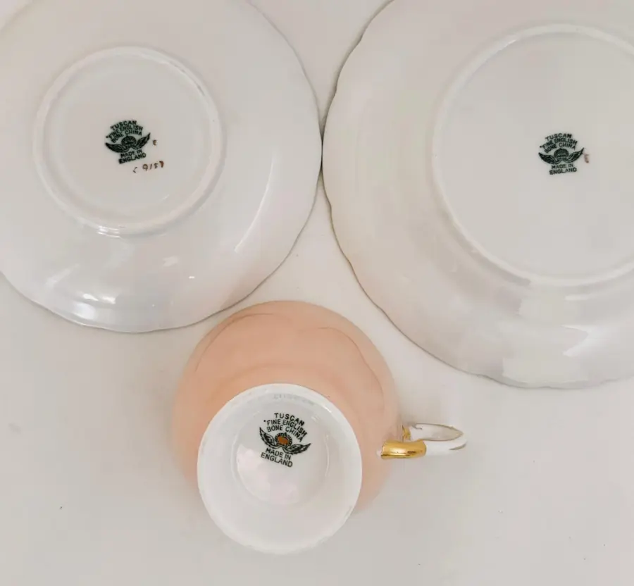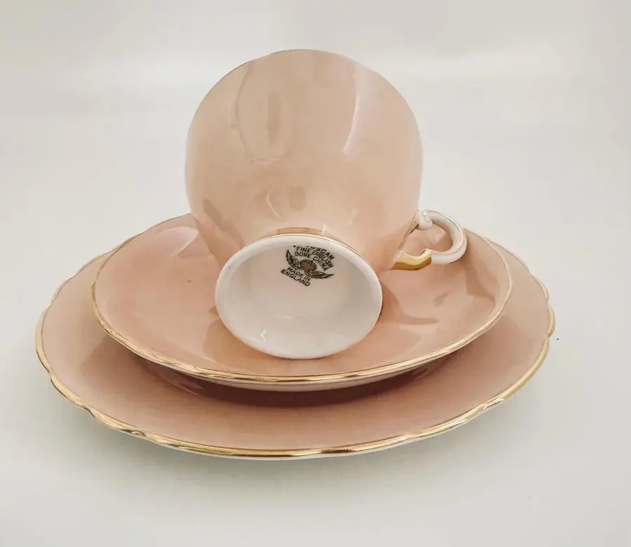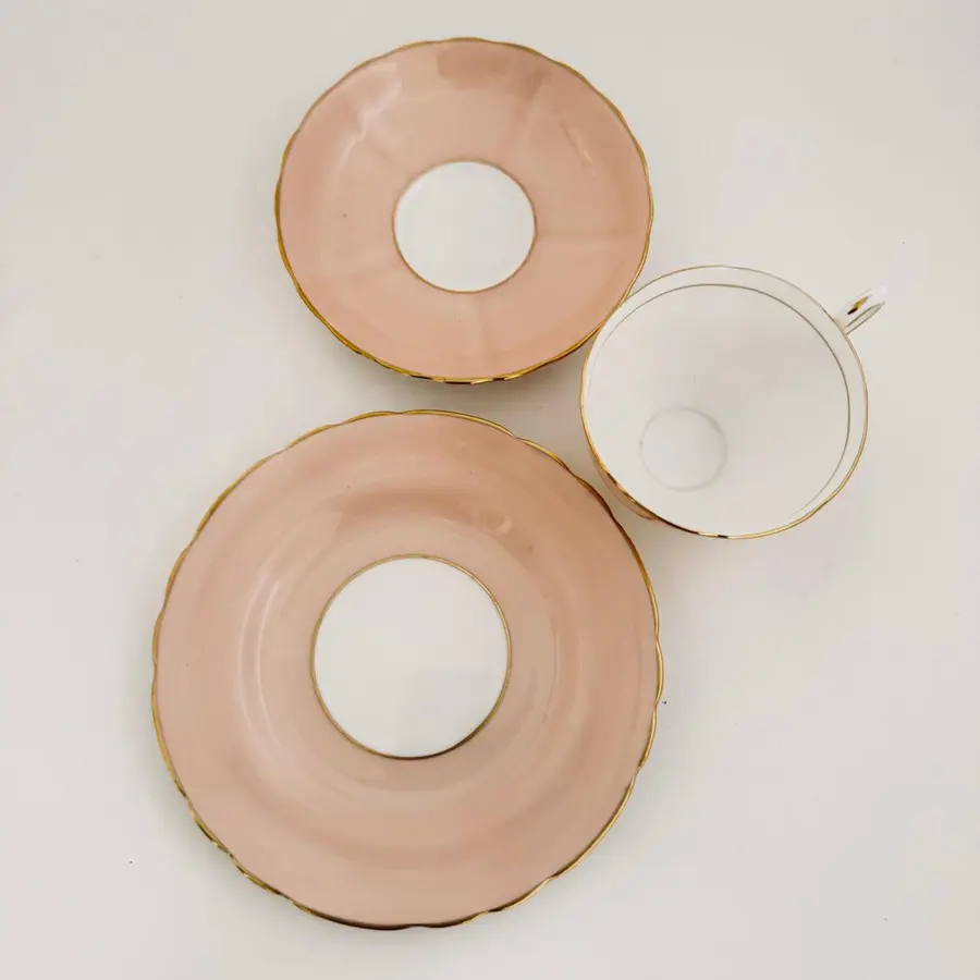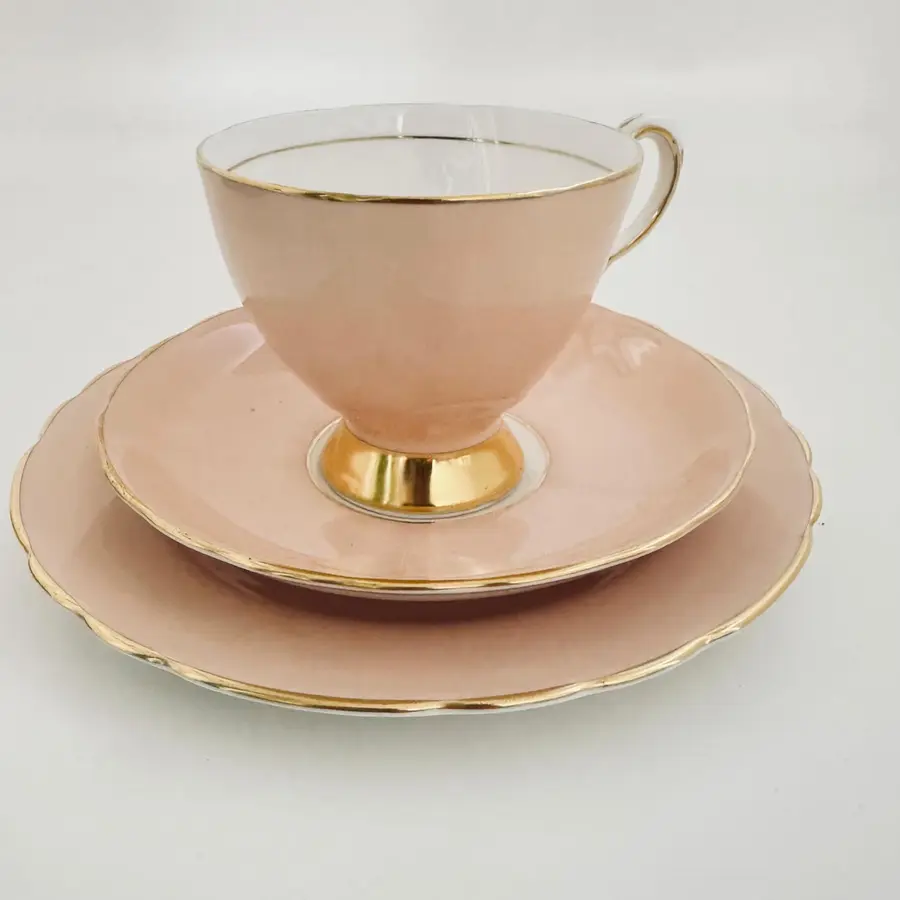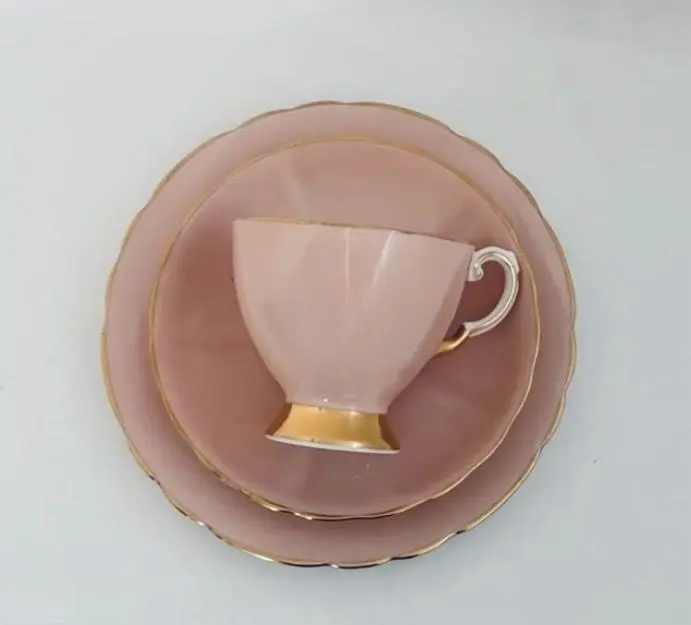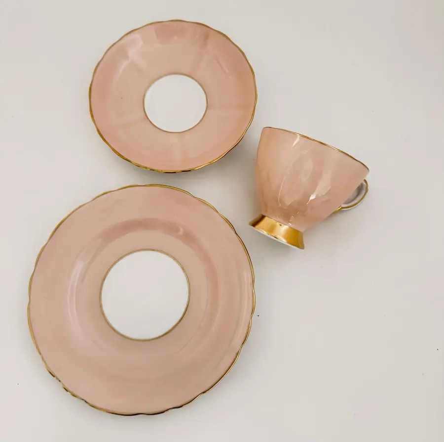 סט טריו מפורצלן בצבע ורוד עתיק וזהב