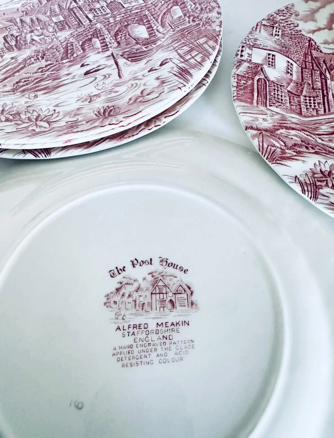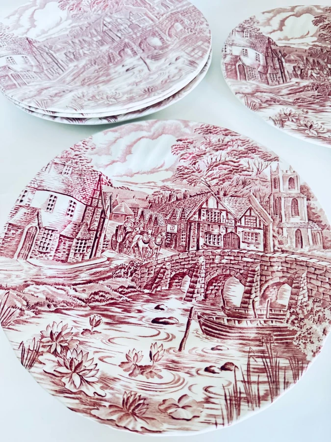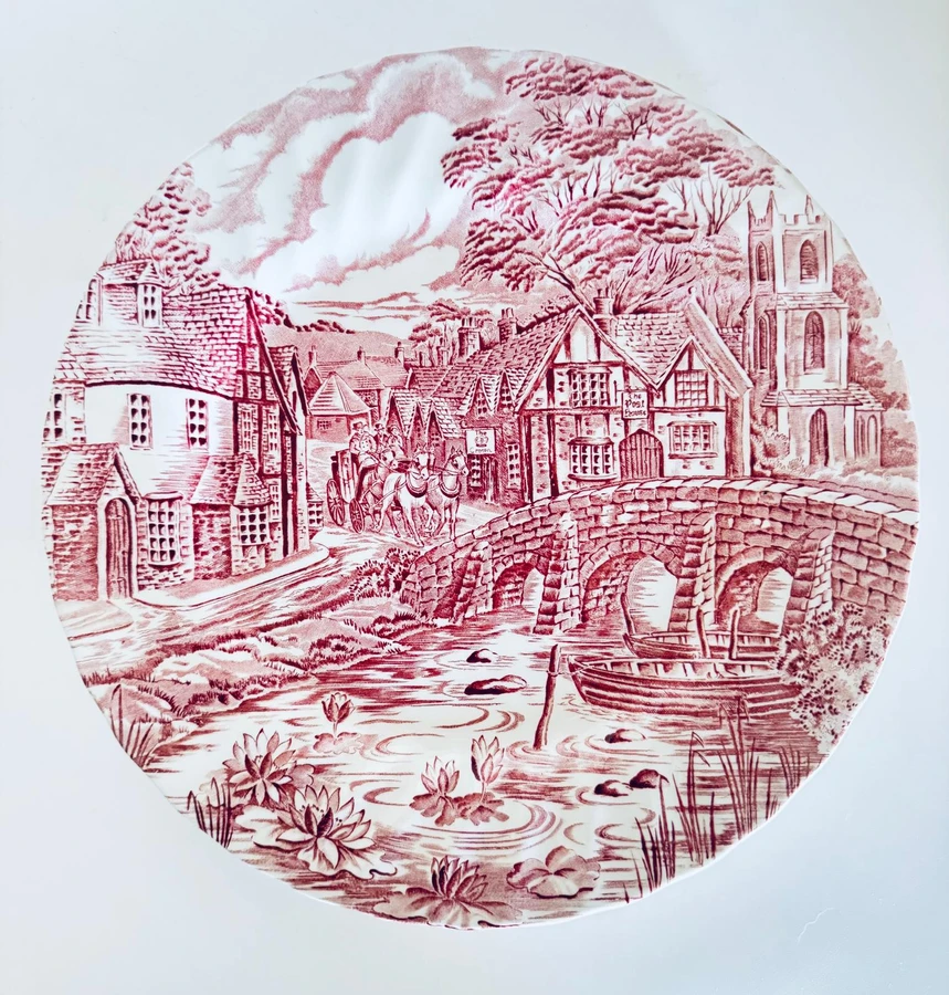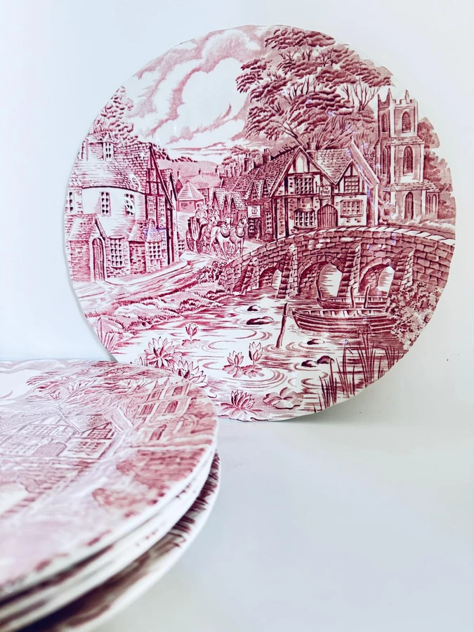 צלחת מנה עיקרית חרס אנגלי ורוד