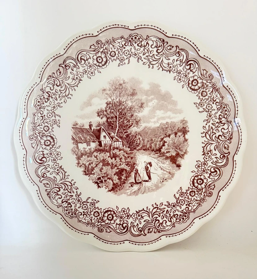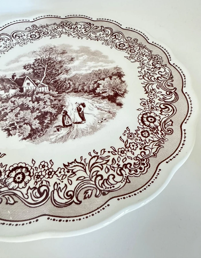 צלחת בודדת , חרס אנגלי, בצבע חום .
