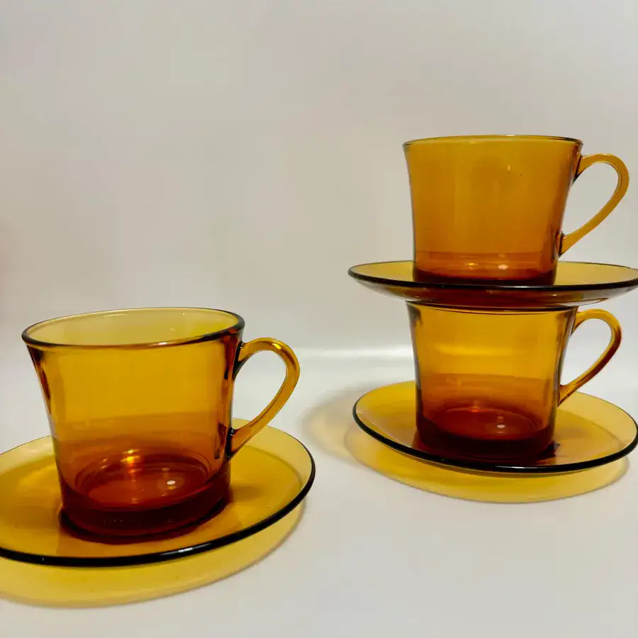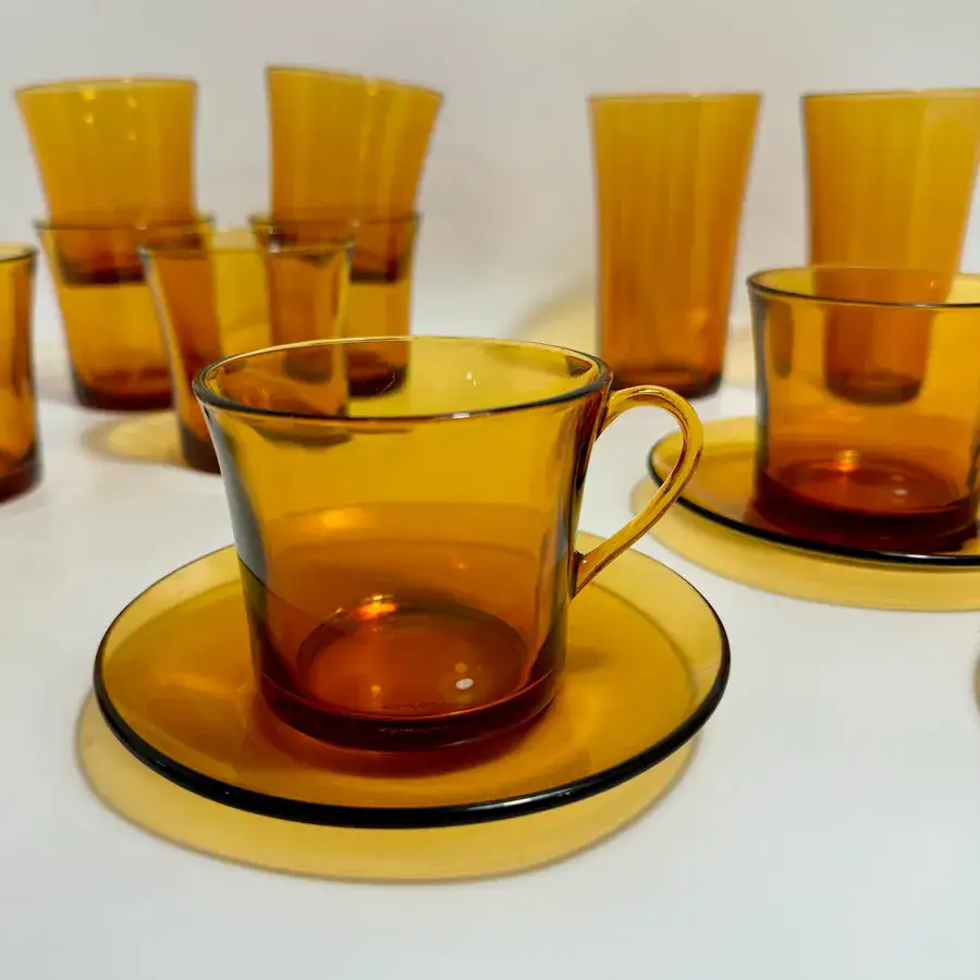 ספל וצלחת זכוכית בצבע ענבר DURALEX