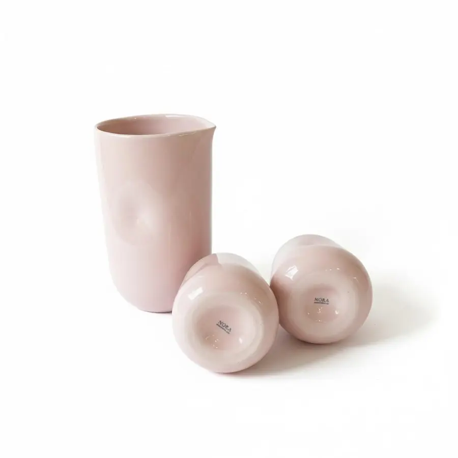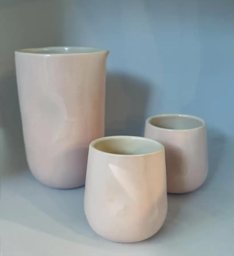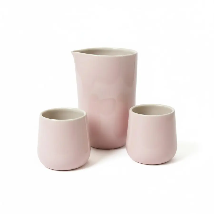 קנקן + 2 כוסות מקרמיקה עבודת יד בצבע ורוד בייבי