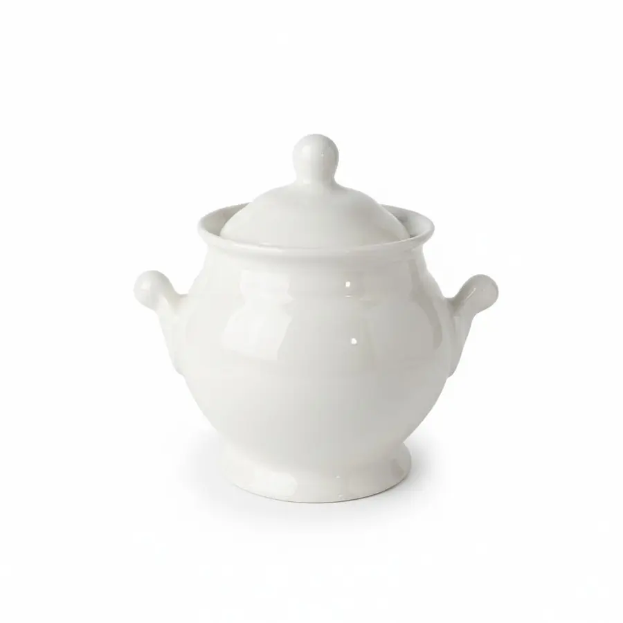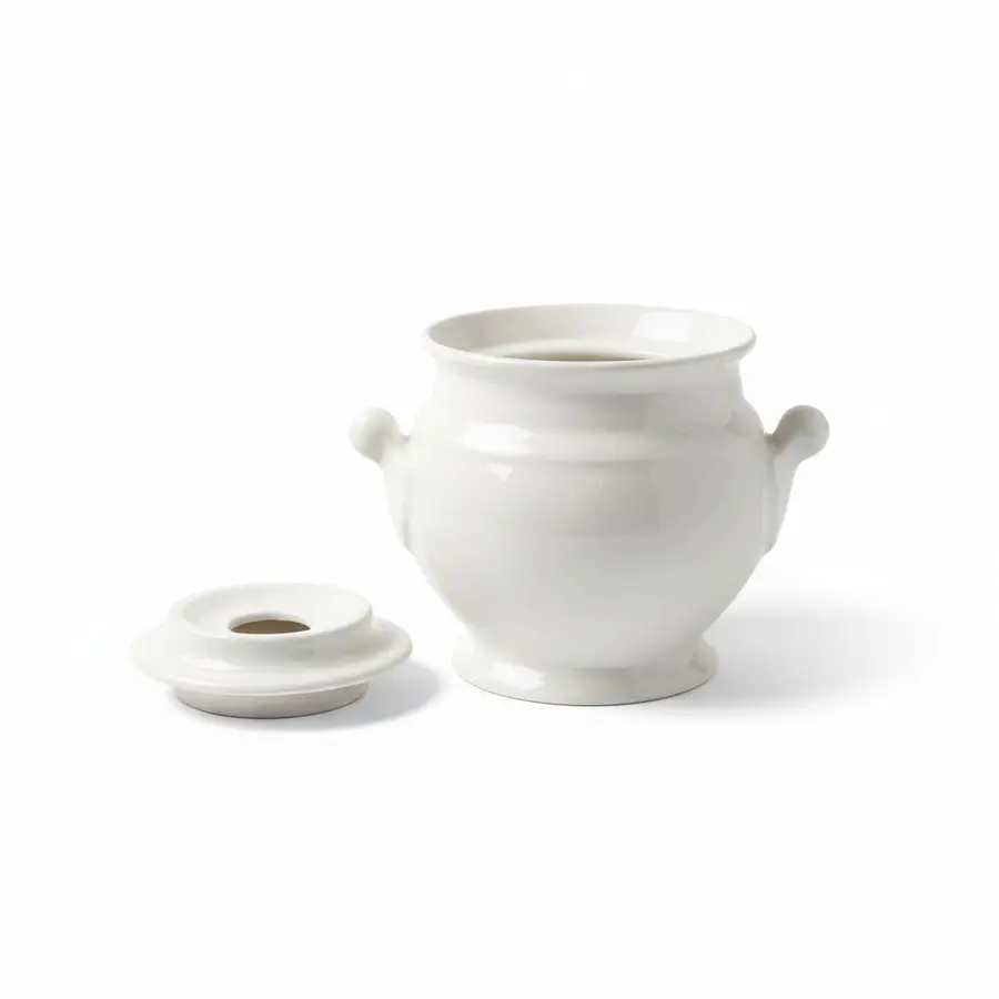 צנצנת קרמיקה עם מכסה בעבודת יד ונפח של 600 מ"ל , בצבע לבן