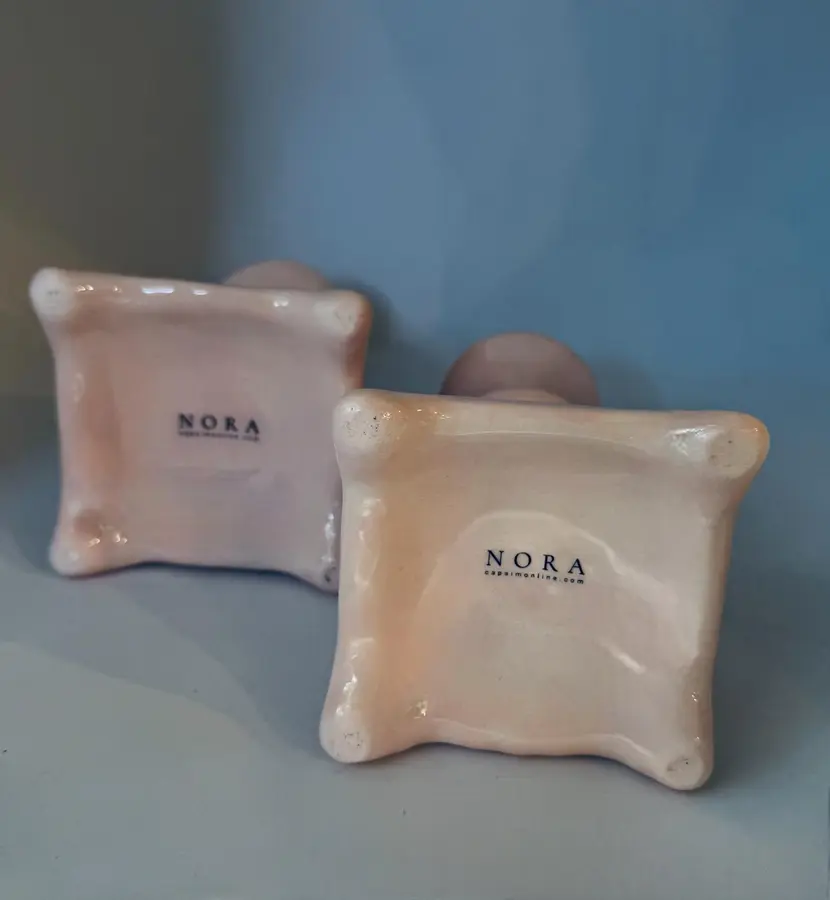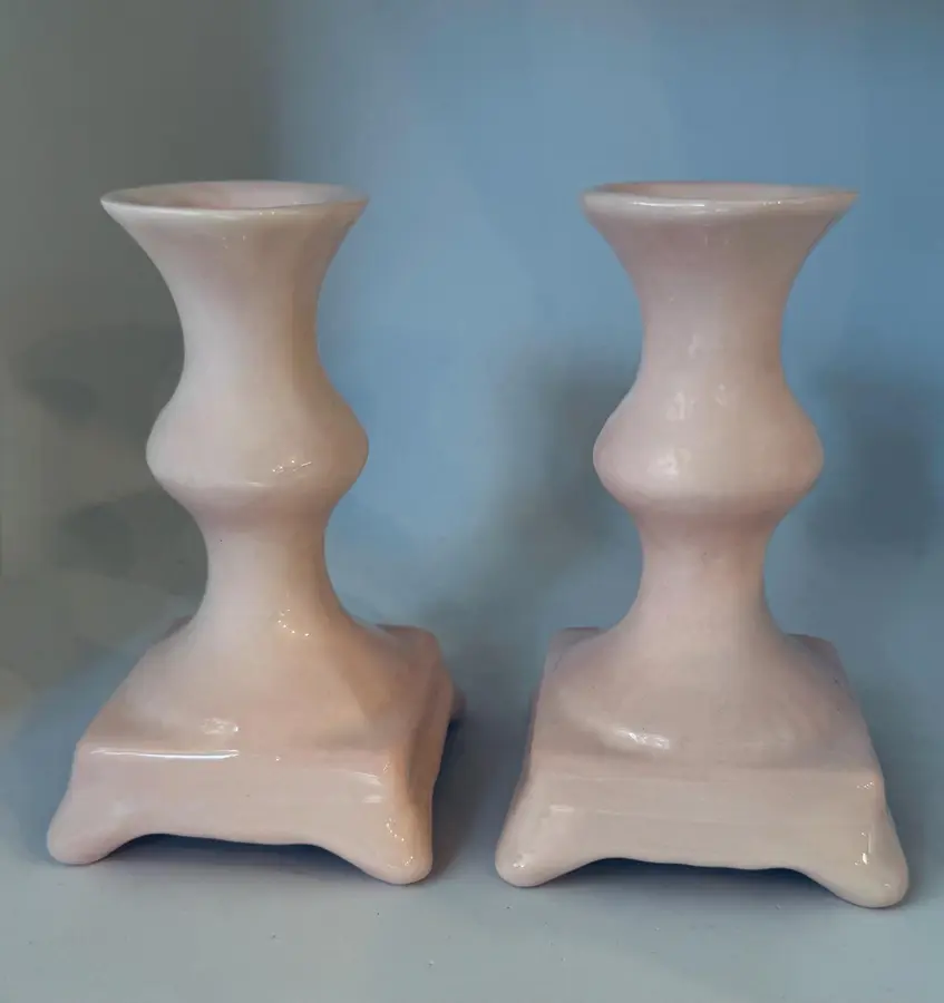 זוג פמוטים מקרמיקה - בצבע ורוד בייבי בגימור מבריק