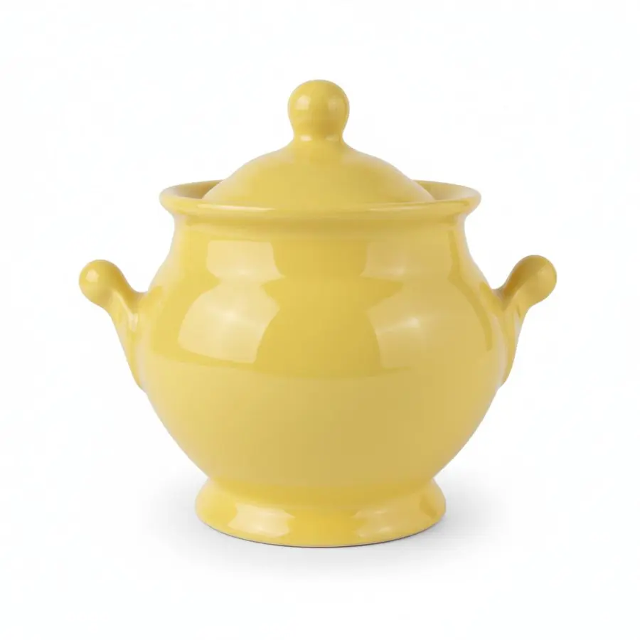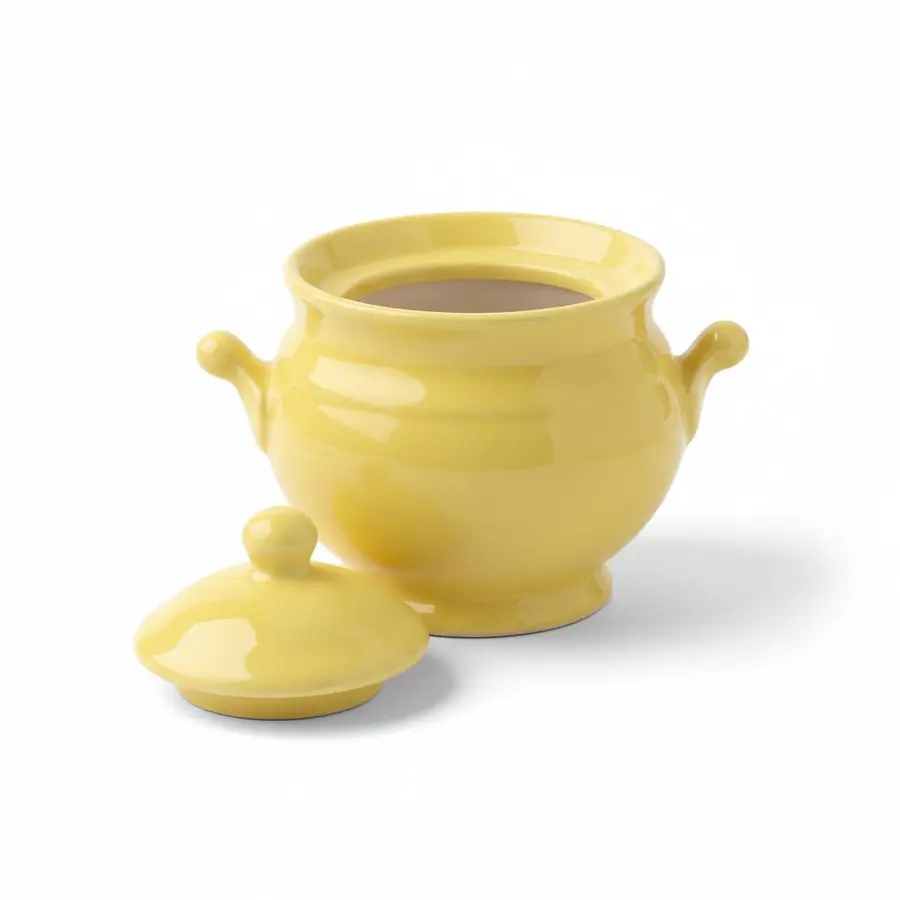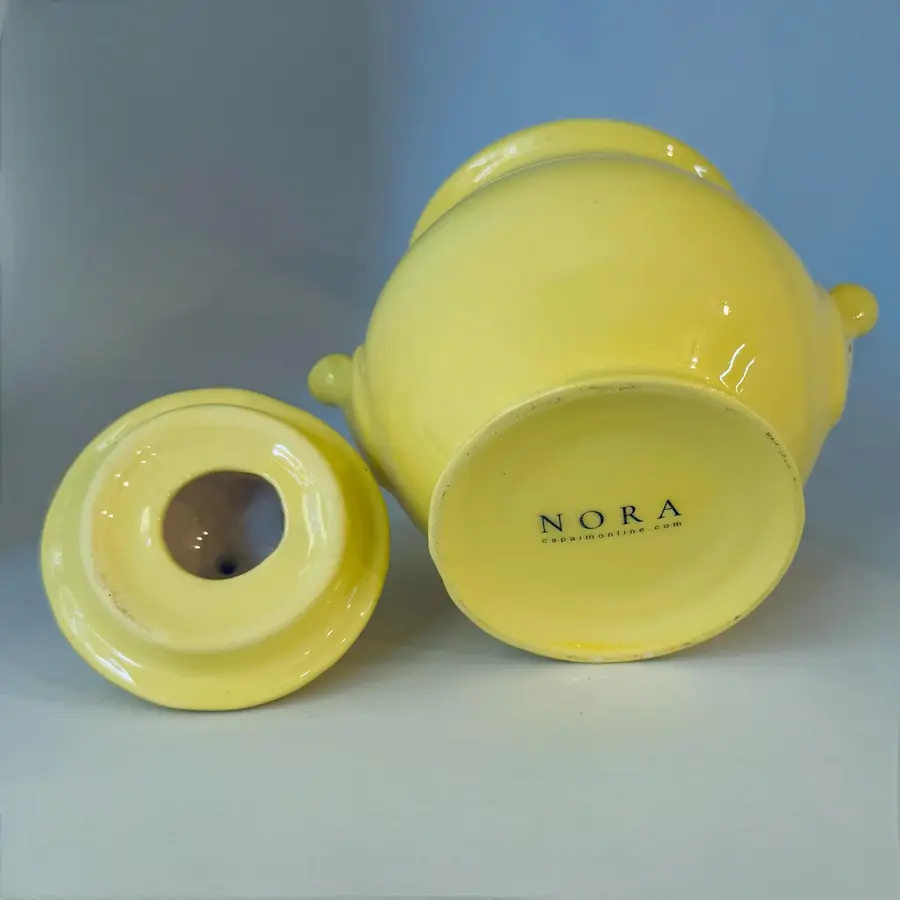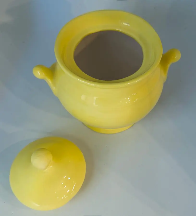 צנצנת קרמיקה עם מכסה בעבודת יד ונפח של 600 מ"ל , בצבע צהוב