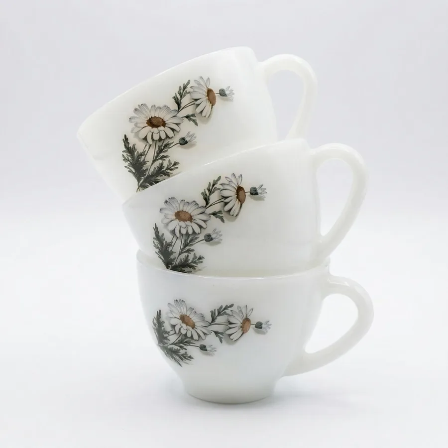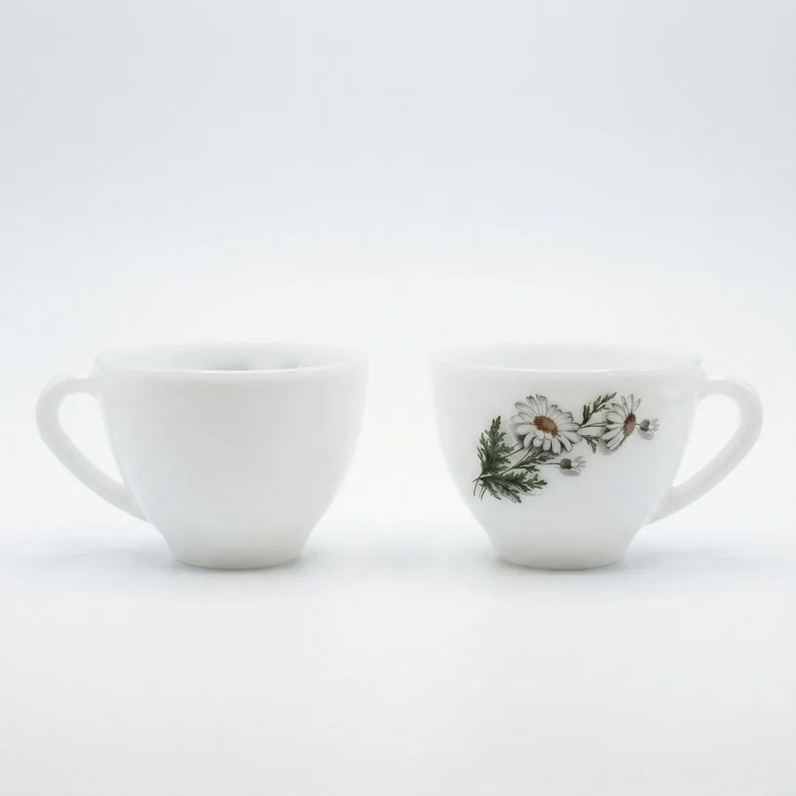 ספל ציור פרח המרגנית וצלחת ללא ציור , מזכוכית "ארקופל "