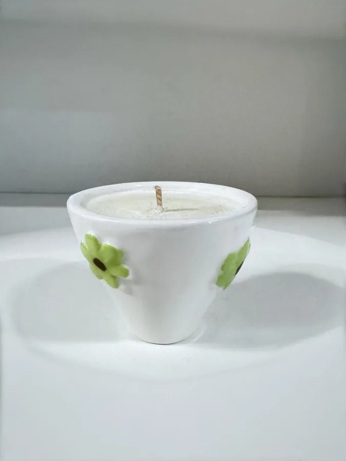 נר ריחני בתוך ספל קרמיקה עבודת יד