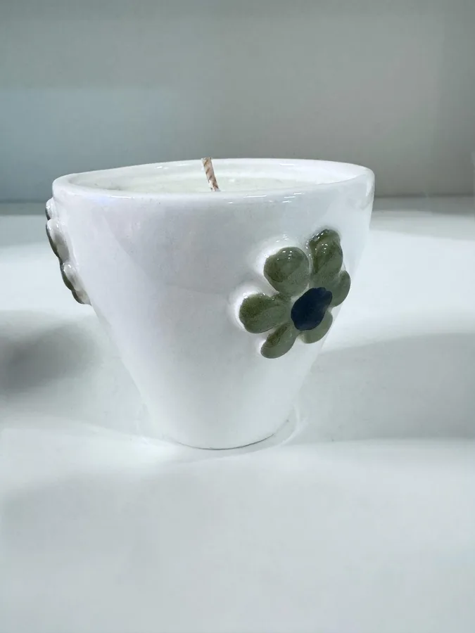 נר ריחני בתוך ספל קרמיקה עבודת יד