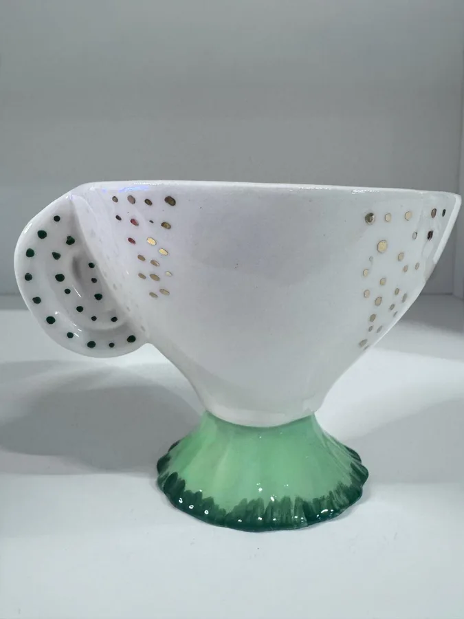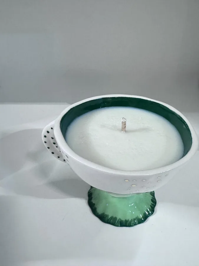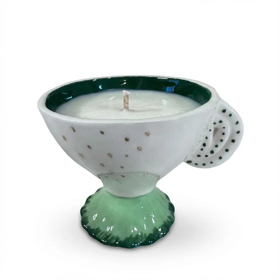 נר ריחני בתוך ספל "דרור" – בצבע לבן ירוק וזהב