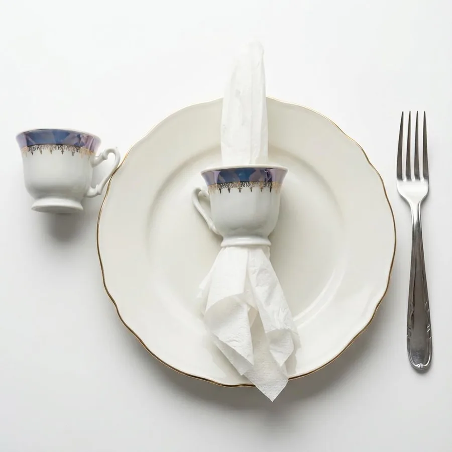 ספל פורצלן וינטג׳ שקיבל חיים חדשים והפך לחבק למפית