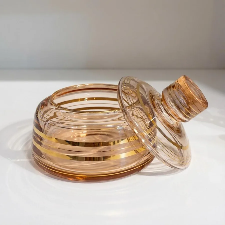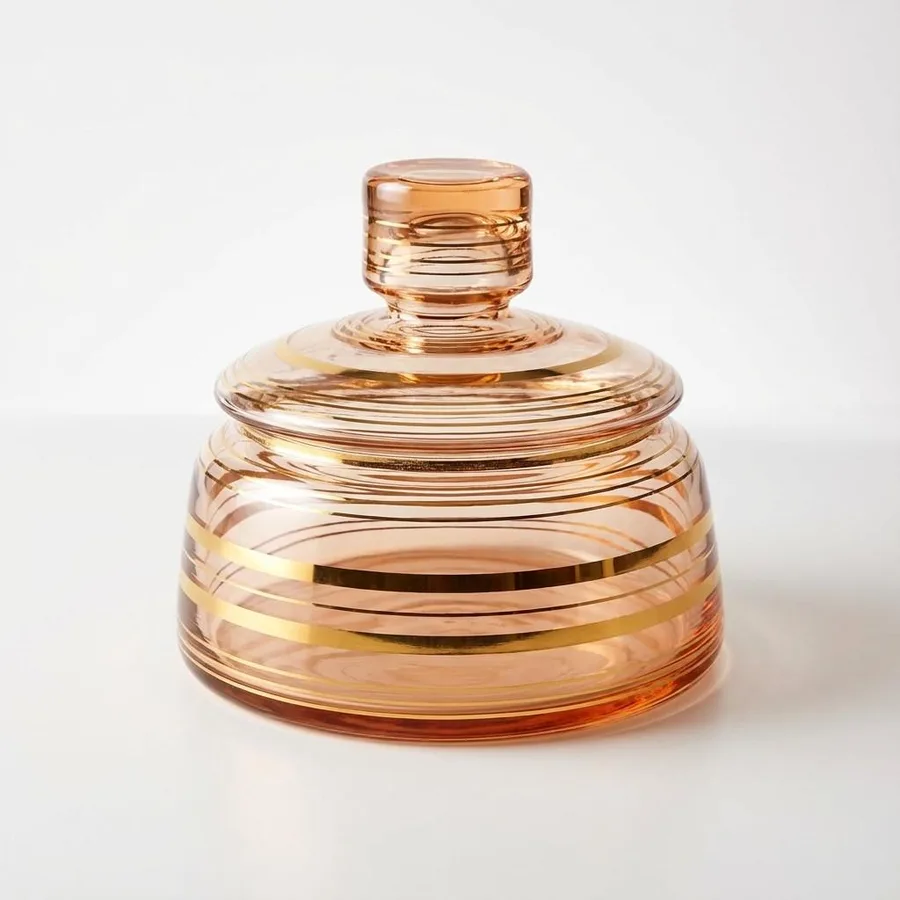 צנצנת קריסטל כולל מכסה , מעוטר בפסי זהב