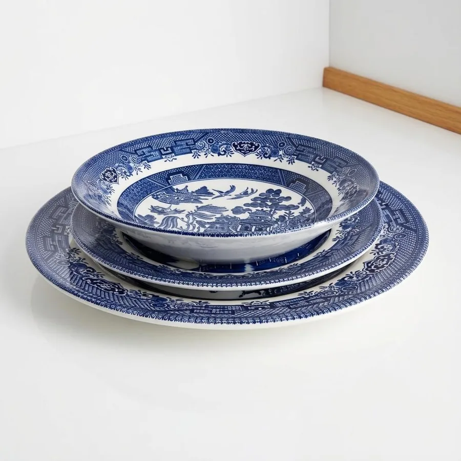 צלחת מנה עיקרית חרס בגוונים כחולים