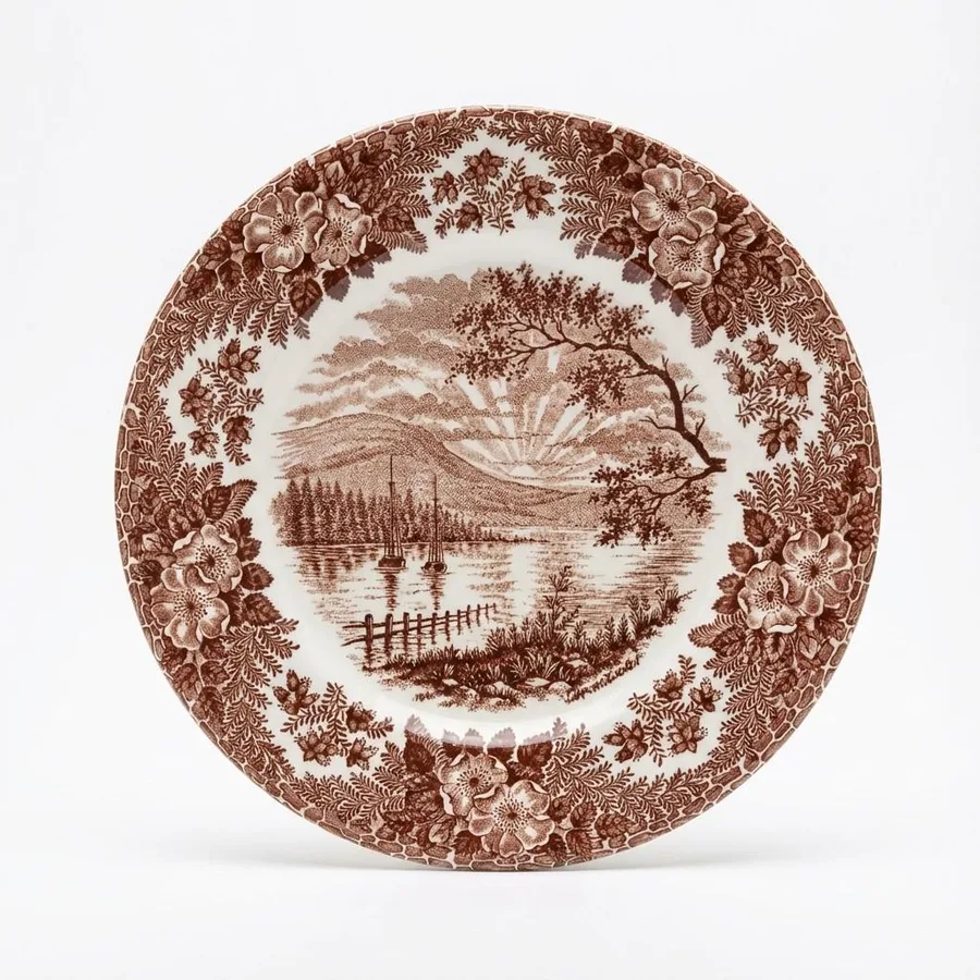 צלחת מנה עיקרית קוטר 24.5 ס"מ חרס בגוונים חומים