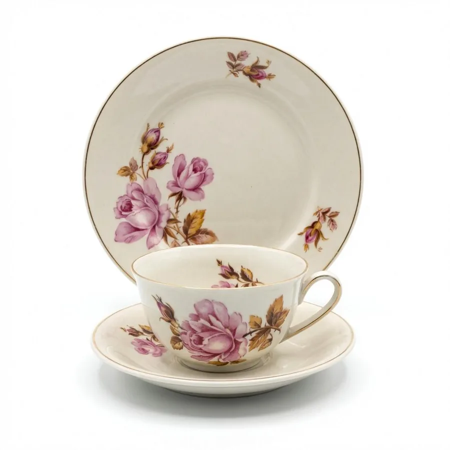 ספל ,צלחת תחתית וצלחת עוגה מפורצלן