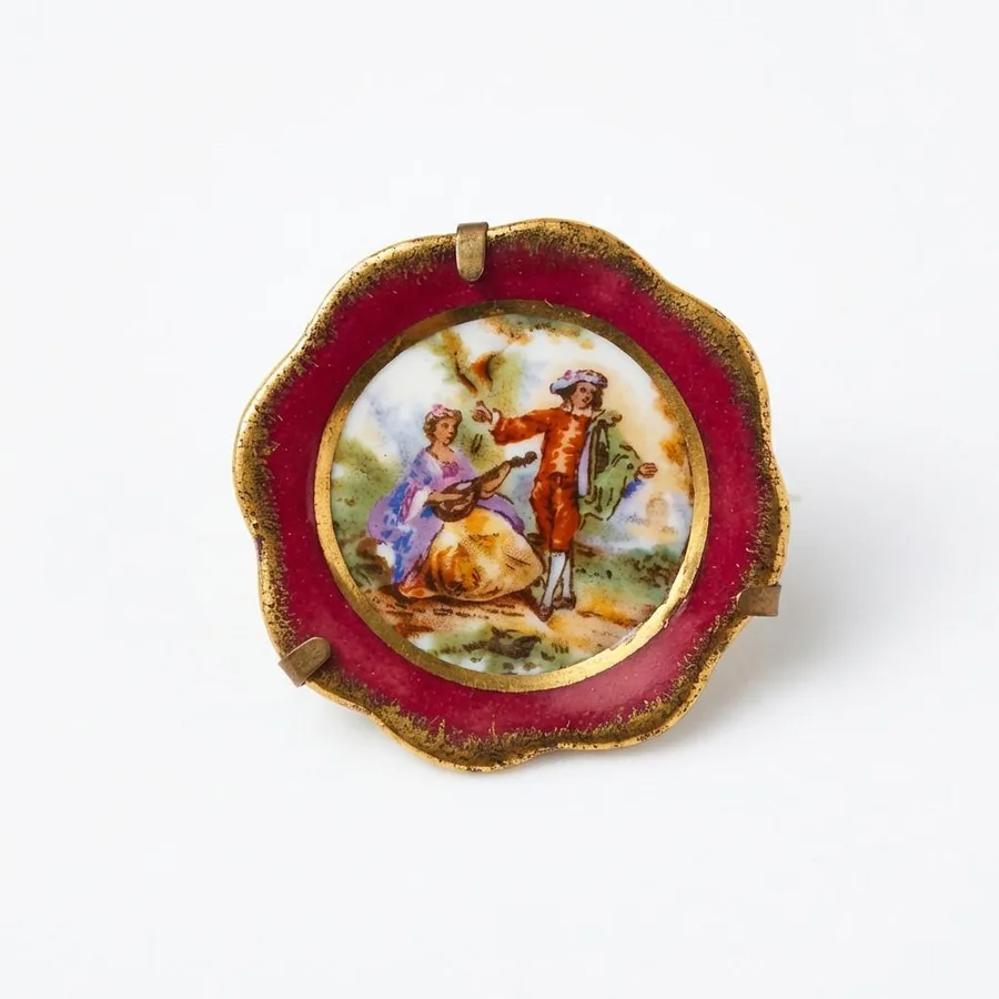 איור זוג רומנטי מסגרת בורדו ופס זהב .