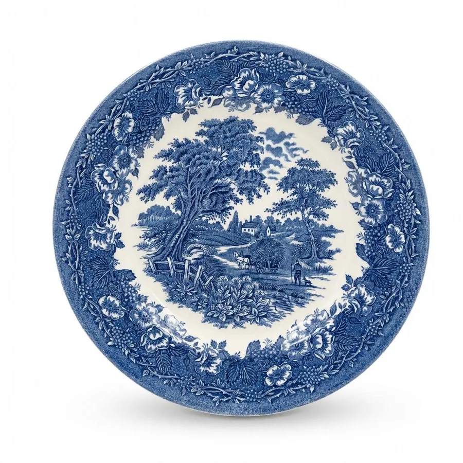 צלחת הגשה קוטר 29 ס"מ חרס אנגלי בגוונים כחול לבן