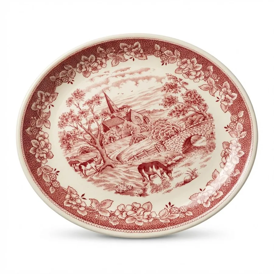צלחת בודדת , חרס אנגלי, בצבע חום .