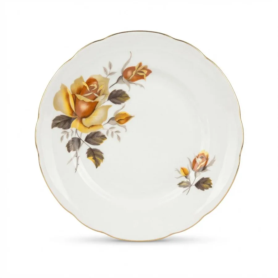 כולל איורי שושנה בגוונים צהובים ופס זהב במצב מעולה