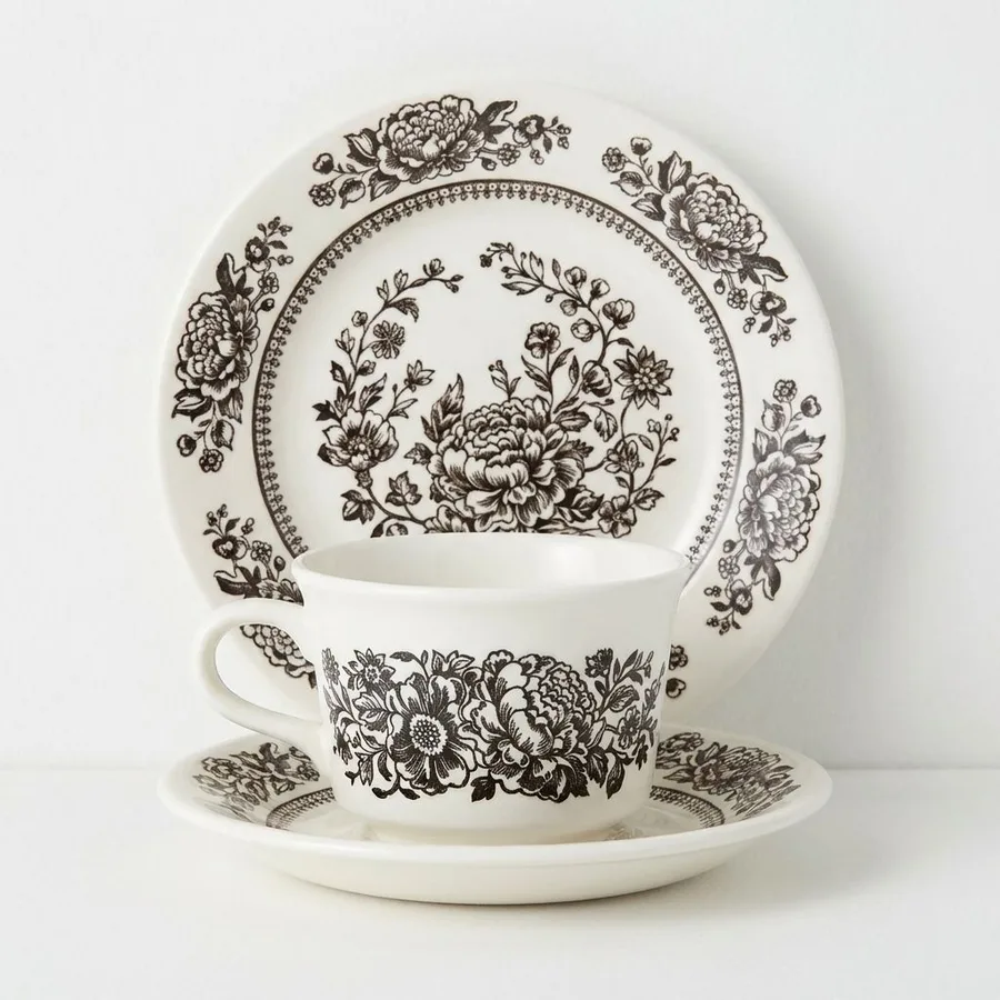 באתר יש צלחות עוגה ,צלוחיות וצלחות מנה עיקרית מאותו סט.