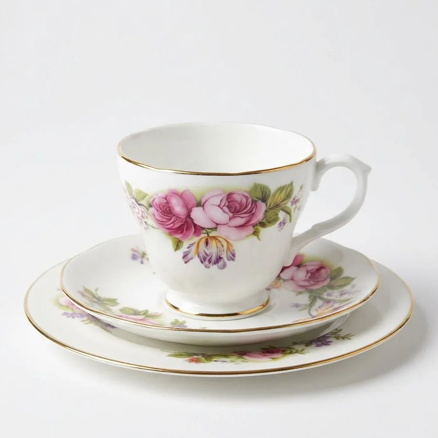 ספל ,צלחת תחתית וצלחת עוגה מפורצלן