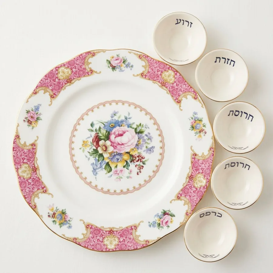 צלחתROYAL ALBERT וקעריות קרמיקה עבודת יד = צלחת פסח